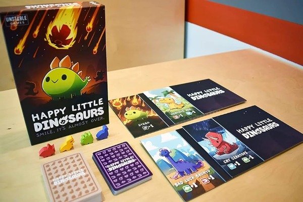 Happy Little Dinosaurs es un party/filler de cartas donde intentás sobrevivir a desastres ridículos mientras esquivás meteóritos, rupturas amorosas y volcanes. Jugá cartas para evitar la catástrofe, coleccioná sets y sé el primer dino en escapar del drama prehistórico con una sonrisita irónica. 😅